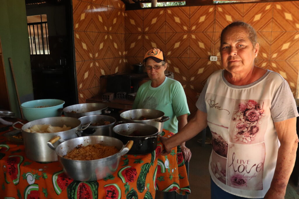 Já a produtora rural Helena Barbosa foi a cozinheira do dia seguinte, em outro assentamento do município, e conta que sempre se disponibiliza para ajudar: “Aqui quase não tem ninguém disponível para essas coisas, então eu e a vizinha sempre ajudamos. A gente gosta de receber, de fazer comida para quem vem de fora. É bom ver o pessoal feliz e poder contribuir com o trabalho.”