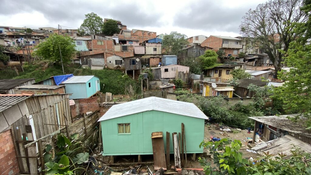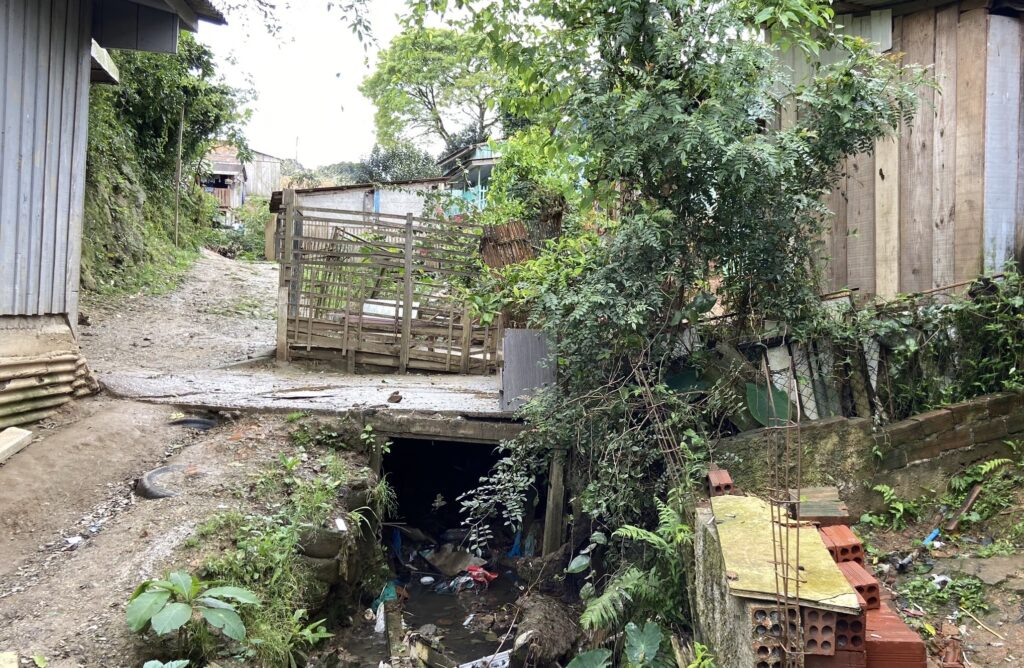 A comunidade Vila Nova, em Colombo, vive há décadas sob o medo de deslizamentos e alagamentos. No bairro Roça Grande, às margens do rio Atuba, ela fica em uma área de encostas íngremes e vales estreitos, com moradias construídas em terrenos instáveis e sem infraestrutura adequada. “Tem alagamento sempre que chove e os deslizamentos vão para cima da minha casa”, explica Pedra Marcondes, moradora de uma das regiões mais afetadas na Vila Nova, conhecida como “o Beco”. Assim como ela, a vizinha e a filha ficam apreensivas a cada vez que o tempo muda: “Quando desbarranca vem muita terra para nossas casas e temos que tirar”, conta, “arrumamos o que a chuva destrói e seguimos, mas toda vez que está para chuva é uma preocupação”.